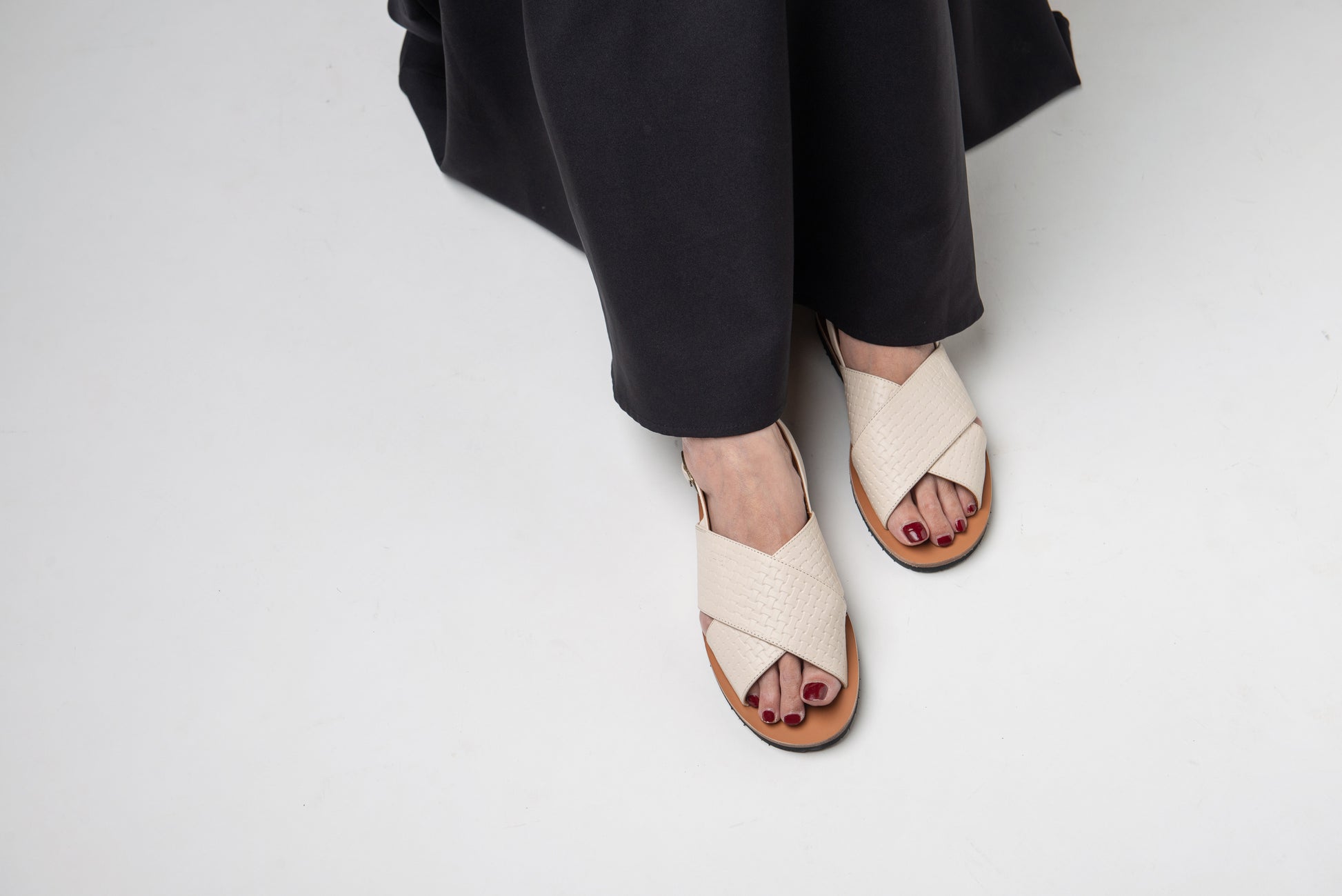 Grey By Ortenhill Unisex Leather Octover Weave Sandals in Cashmere White | Eur sizes 35 - 44 | Upper - Cow Hide Leather Weave Made in Italy | Inner - Kid Lining | Insole - Buffalo | Outsole - Rubber |