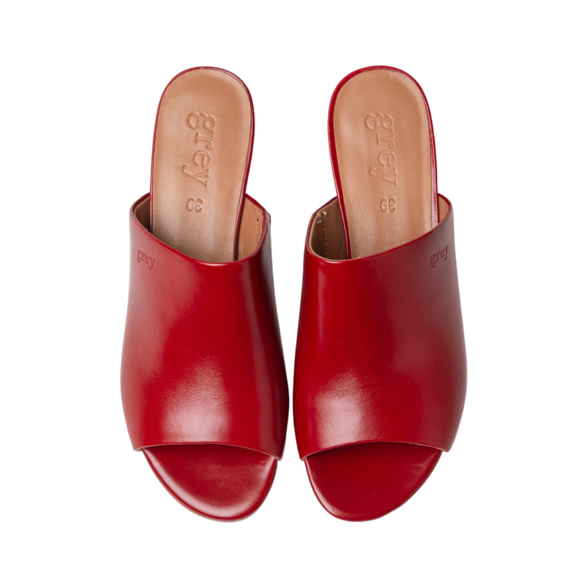Low Heeled Mule Sandals (Heidi - Burgundy Red)