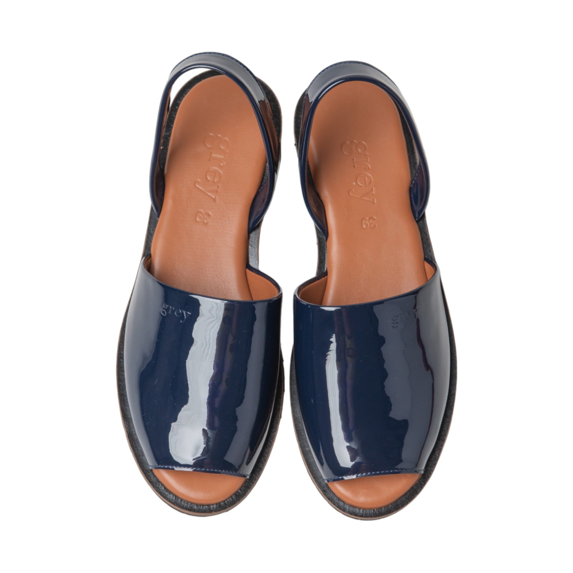 Grey By Ortenhill Cushioned Leather Sandals In Patent Leather Dark Blue